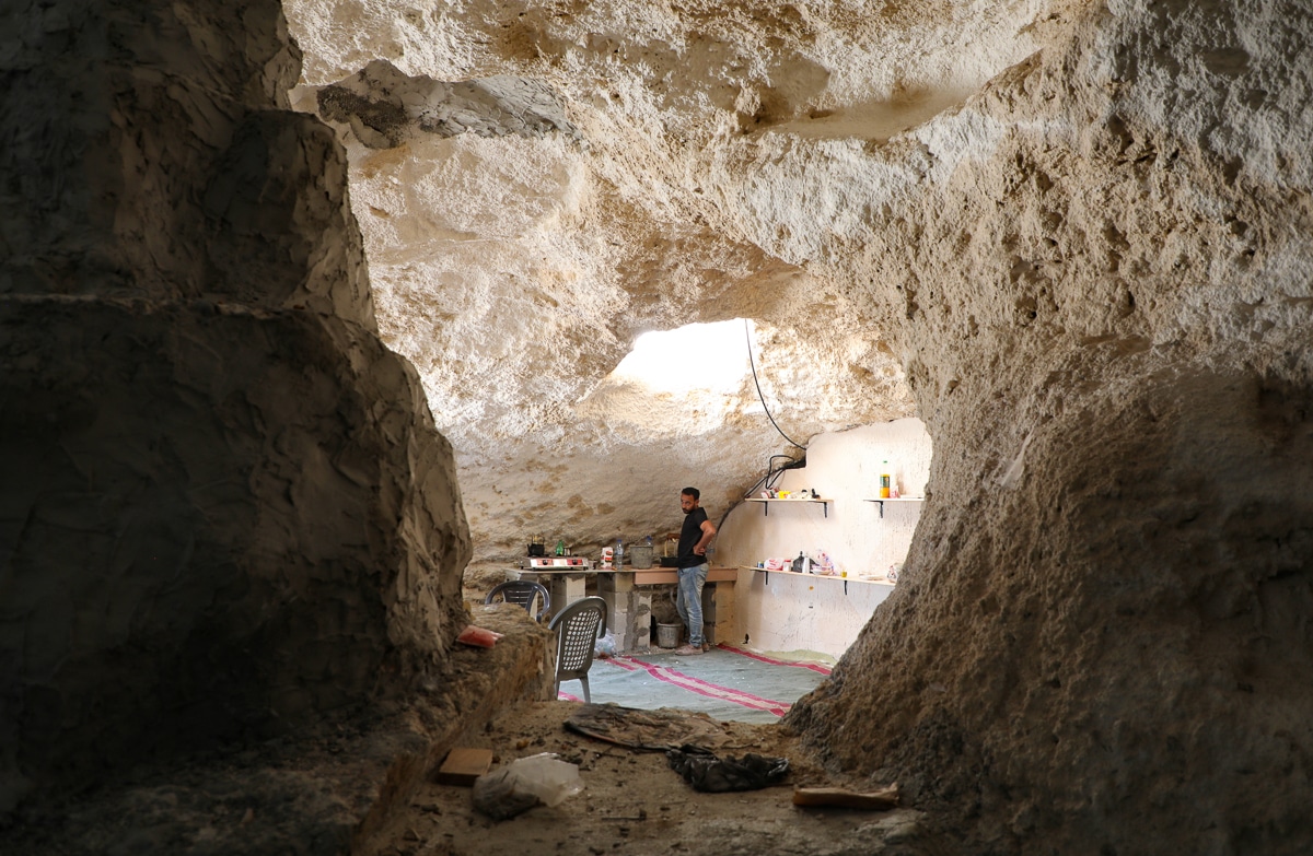 Amarneh a scellé l’entrée de la maison troglodyte avec un mur de pierre et a installé une porte en bois en son centre.