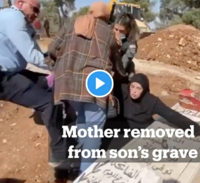 Une mère s’accroche de toutes ses forces à la tombe de son fils. Les images font le tour du monde. L’horreur du racisme colonial en plein dans les yeux. Israël rase une partie de ce cimetière palestinien de Jérusalem pour y construire un parc… un parc! pic.twitter.com/QzNmbhoT7D