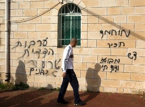 De nombreux tags en hébreux avec des insultes visant l’Islam ont été retrouvés peints sur les mur de la mosquée de cette ville arabe (district de Haïfa en Israël).
