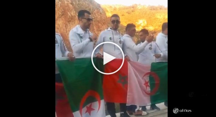 Brandissant des drapeaux algériens et marocains, les jeunes demandent le rapprochement des pays et la possibilité d’aller voir comme ils l’entendent leurs frères marocains, parfois membres de leurs familles.
