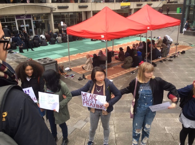 Des dizaines d’étudiants ont contesté cette décision arbitraire en organisant la salât joumou’a du vendredi 19 mai au centre du campus de Norwich, en compagnie de plusieurs dizaines de non-musulmans qui ont décidé de former une chaîne humaine afin d’assurer la protections de leurs camarades de confession musulmane.