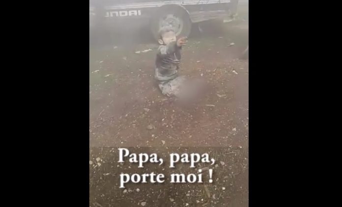 Dans la vidéo suivante on assiste à une explosion causée par un bombardement aérien au cours duquel le jeune enfant AbdelBasset d’Idlib a perdu ses deux jambes coupées par une violence déflagration.