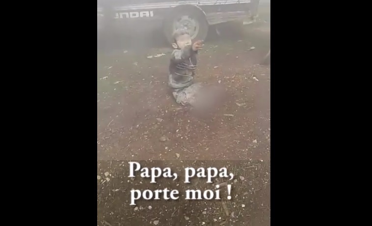 A terre, les jambes sanguinolentes, AbdelBasset appelle désespérément son père pour le porter.