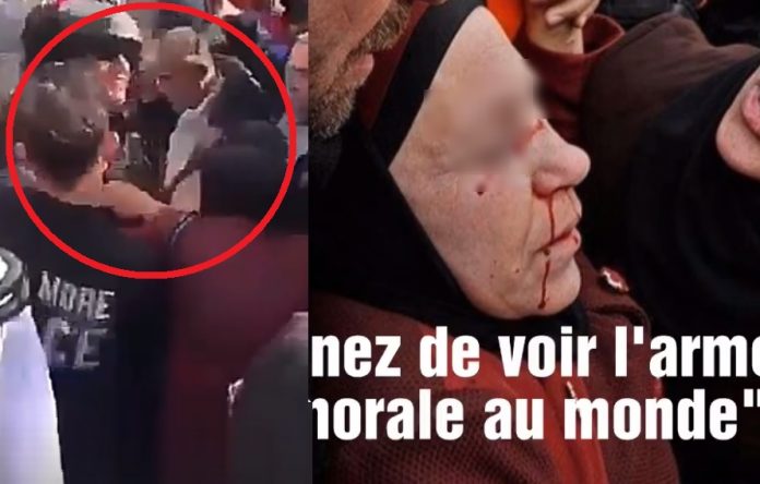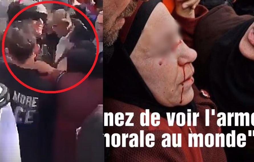 Le vendredi 15 décembre, à Jérusalem, alors que des Palestiniens font face à des soldats sionistes venus en découdre avec la population, on voit sur la vidéo sioniste un de ces “valeureux” soldat qui n’hésite pas à asséner un terrible coup de poing à une vieille dame palestinienne.