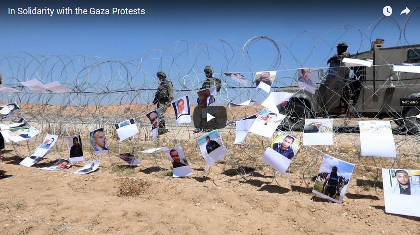 Des opposants juifs israéliens ont décidé de soutenir les Gazaouis en affichant les visages de tous les Gazaouis assassinés depuis le 30 mars par l’armée sioniste sur les barbelés qui les emprisonne, près de Khan Younes.