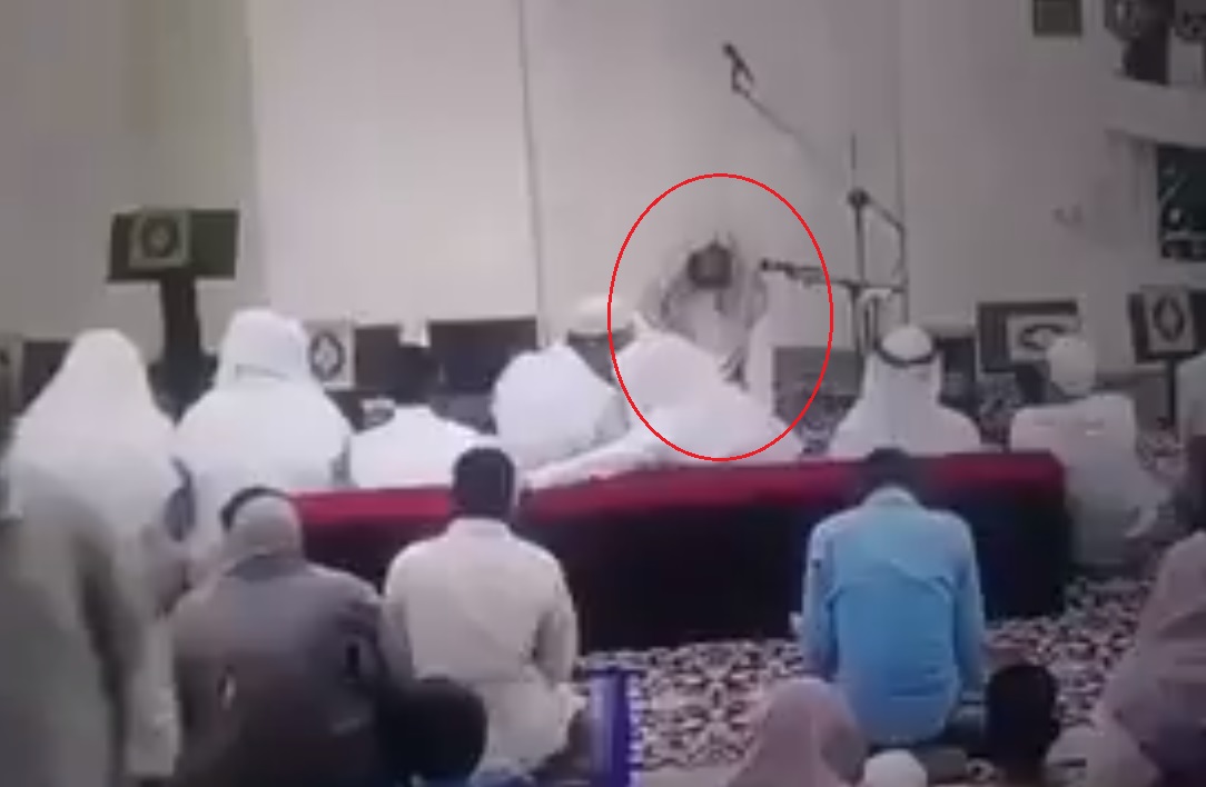 Les images suivantes de sa mort qui circulent depuis quelques jours sur les réseaux sociaux montrent Sheikh Khalid Al-Qurashi s’effondrer après qu’il ait effectué la deuxième salutation finale de la prière, au moment où il faisait face aux fidèles.