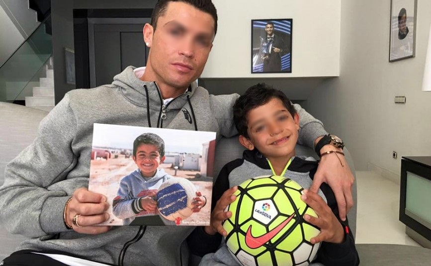 « SauverLesEnfantsSyriens comme Ayman, petit garçon de 5 ans, qui aime jouer au foot autant que Cristiano Junior », indique le message sur sa page officielle.