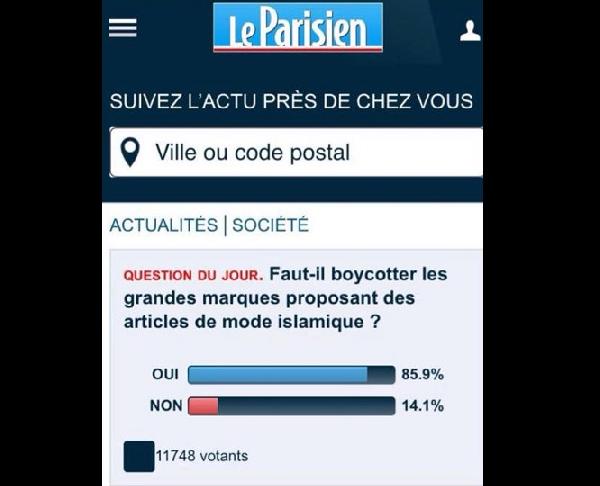 Le journal Le Parisien s’est emparé de ce sujet pour proposer un sondage des plus tendancieux: « Selon vous, faut-il boycotter les grandes marques proposant des articles de mode islamique? »