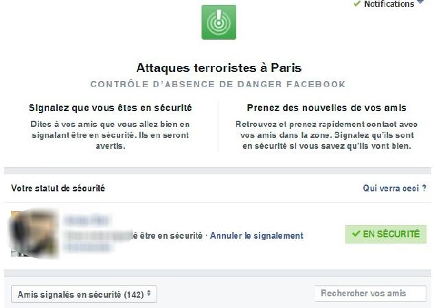 L’outil de «contrôle d’absence de danger» propose en effet aux membres de Facebook susceptibles d’être dans la zone affectée de dire s’ils sont «en sécurité» afin d’en avertir les proches en envoyant une notification.