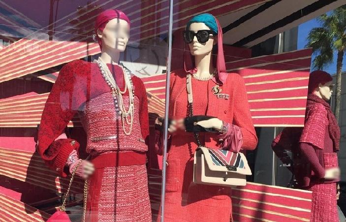 A Rodéo Drive, une rue commerçante de Beverly Hills (Etats-Unis), on peut contempler dans les vitrines de la boutique Chanel, des mannequins portant des hijabs appelés “hijab chic”. De nombreux modèles sont proposés par la grand marque de luxe qui enchante les passants, grâce à des combinaisons de styles fascinantes: broches, sacs, gants et lunettes viennent accessoiriser des looks branchés et adaptés aux femmes pudiques.