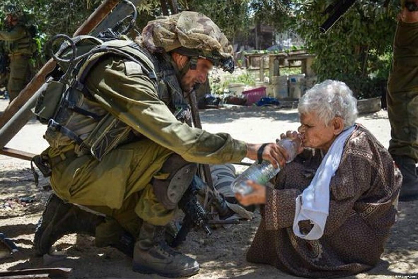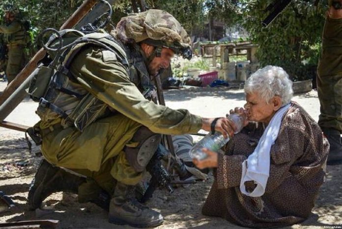 En été 2014 lors des bombardements israéliens de la bande de Gaza, un soldat de Tsahal s’est approché d’une Palestinienne de 74 ans, Ghalya Abu-Rida, afin de lui donner quelques gorgées d’eau.