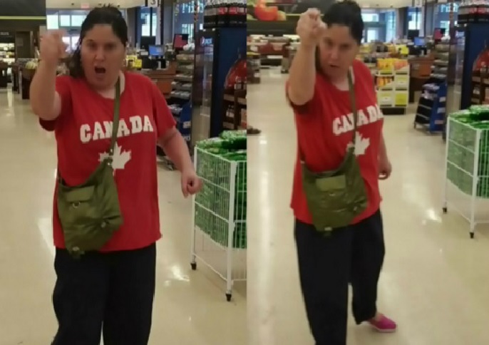 La sœur fait tranquillement ses emplettes avec son bébé de quatre mois dans les bras lorsque déboule une furie toutes griffes dehors. La canadienne se jette sur la musulmane et lui arrache violemment son hijab avant de la frapper et de lui cracher dessus.