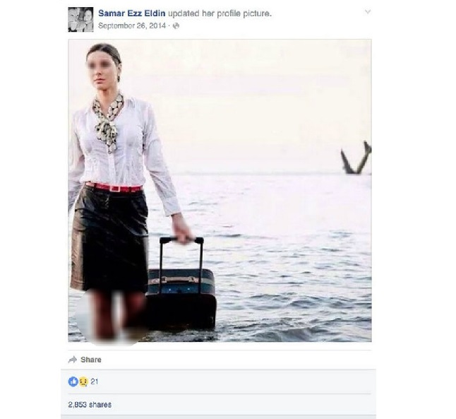 Le 26 septembre 2014, la jeune femme poste sur Facebook une photo d’une hôtesse de l’air sortant de l’eau une valise à la main, si la scène n’a rien d’extraordinaire l’avion qui se crash au loin donne une toute autre dimension au cliché maintenant que l’on sait ce qu’il est advenu de l’airbus A320 reliant Paris au Caire.