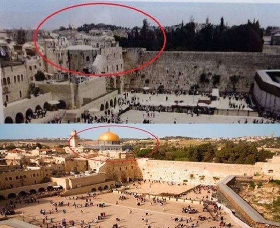 Ce n’est pas la première fois que les Israéliens s’adonnent à cette imposture de haut niveau. Il y a quelques années, le rabbinat militaire avait déjà diffusé, à l’occasion de la fête juive de Hanukkah, la même photo, gommant la présence du Ḥaram aš-Šarīf” (ou “Noble Sanctuaire”) diffusé dans les unités de l’armée israélienne.