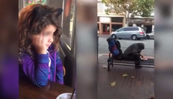Voici une nouvelle vidéo qui nous montre combien les enfants sont extrêmement généreux. Cette fois-ci, alors qu’un père et sa fille se retrouvaient attablés à l’heure du déjeuner dans un restaurant, la petite aperçoit un SDF dans la rue.