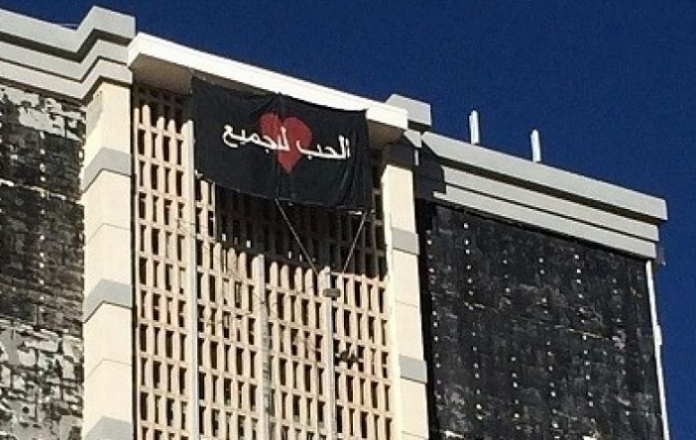 A Lubbock, une petite ville du Texas, la municipalité a découvert avec effroi un drapeau flottant sur un édifice de la ville, avec une étrange inscription en arabe.