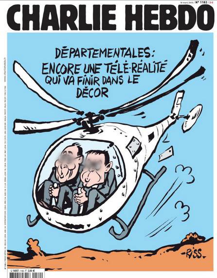Le journal satirique égal à lui-même a choisi la catastrophe en Argentine, ayant fait une dizaine de morts après le crash de deux hélicoptères, pour illustrer la future débâcle du PS lors des prochaines élections départementales.