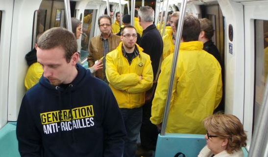 C’est un peu plus tard que la jeunesse du Bloc identitaire a reçu une visite quelque peu inattendue. Des militants d’extrême gauche, dénonçant toute forme de discrimination, se sont fait entendre en scandant: «Le racisme ne passera pas !»… « les pauvres n’ont pas de couleurs ! », « nous sommes tous des enfants d’ immigrés ! », « pas de fachos dans nos quartiers ! ». Les membres de Génération Identitaire ont été contraint de quitter les lieux.
