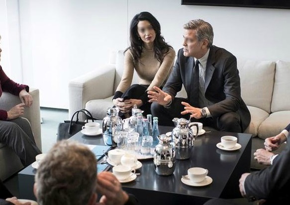 «GEORGE CLOONEY- J’ai rencontré Angela Merkel avec David Milliband, le président de IRC (International Rescue Committee) avec lequel je travaille depuis plusieurs années. Ma femme et moi voulions avoir une entrevue avec la Chancelière parce que l’Allemagne joue un rôle déterminant dans la crise des réfugiés, avec un grand sens des responsabilités. Les autres pays sont à la traîne, y compris le mien, les États-Unis. Nous n’accueillons que 10 000 réfugiés par an, c’est une honte. Notre aide est insuffisante.»