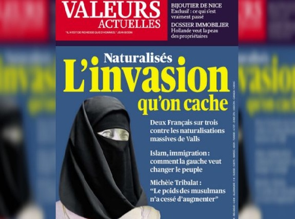 D’avoir, le 22 septembre 2014, publié à sa Une une représentation de Marianne en niqab, avec pour titre aguicheur: « Naturalisés, l’invasion qu’on cache »; ainsi que: « Deux français sur trois contre les naturalisations massives de Valls »; ou encore: « Islam, immigration comment la gauche veut changer le peuple ».