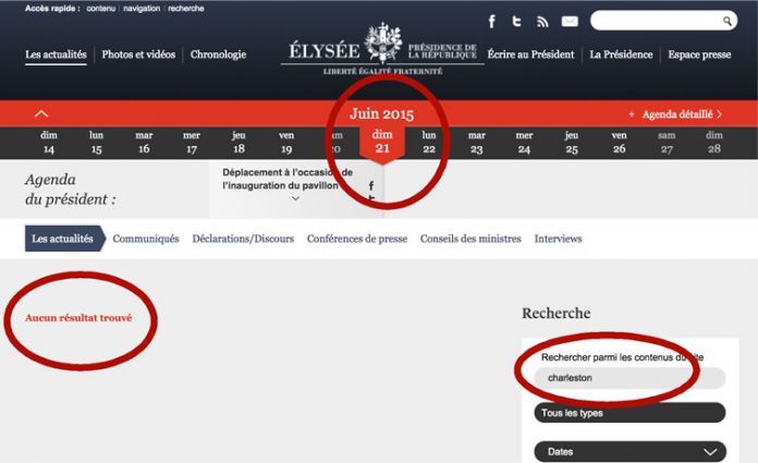 Mais pour cet acte terroriste perpétré contre des noirs, pas un mot. Sur le site officiel de l’Elysée, même constat désolant, aux dernières nouvelles, pas une ligne pour condamner l’horrible assassinat de ces 9 personnes.