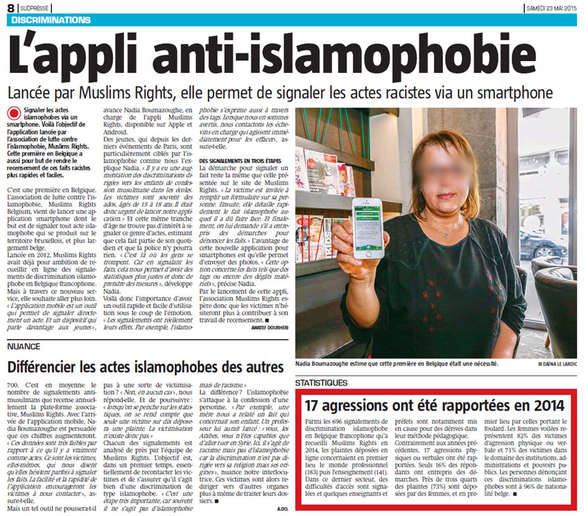 Le « Livre blanc» publié en 2013 par Muslims Rights, dresse l’état des lieux de l’islamophobie en Belgique, trois victimes sur quatre ne donnent aucune suite aux discriminations. Il ne reste plus qu’à souhaiter à l’association un franc succès pour cette nouvelle application qui permettra de défendre les droits des musulmans.