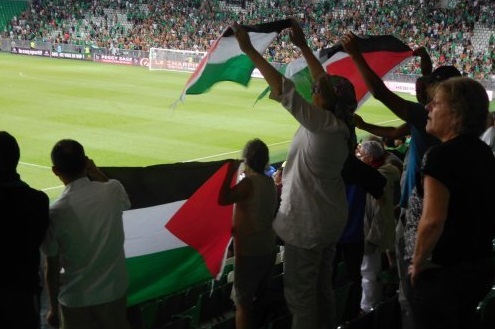 Les menaces de sanctions de l’UEFA n’impressionnent apparemment pas les supporters de football. Après le déploiement des drapeaux Palestiniens par les supporters du club de Glasgow lors de la rencontre contre l’équipe du Beitar Jerusalem, c’est au tour des fans des Verts de titiller l’instance footballistique européenne.