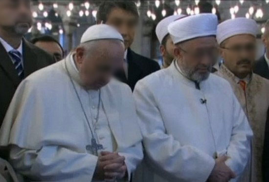 Les deux hommes ont médité en direction de La Mecque pendant plusieurs minutes, les yeux fermés et les mains jointes l’un à l’autre. Selon le porte-parole du Vatican, le pape a réalisé une « adoration silencieuse ».