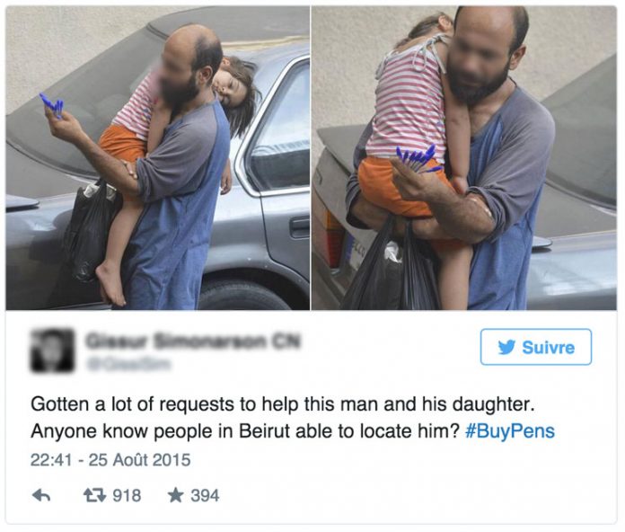 C’est le cas d’un syrien dont les clichés le montrant déambulant avec ses deux petits enfants dans les rues de Beyrouth tentant vainement de vendre des stylos pour subvenir aux besoins de sa petite famille, ont ému la plupart des internautes.
