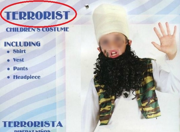 Au-delà du mauvais goût et de la provocation, ce déguisement qui aurait pu passer inaperçu et donc de continuer à être commercialisé, alimente l’idée de l’“Arabe musulman terroriste”.