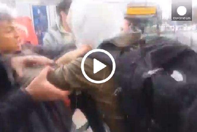 Malmenés, de jeunes istanbuliotes leurs ont mis des sacs sur la tête et jetés des boules en papier, en représailles aux forces spéciales turques qui ont été agressées de la même manière en 2003 en Irak par l’armée américaine.
