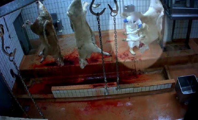Des gestes de maltraitance barbares, où les animaux sont assommés à coup d’aiguillon électrique sur la tête. Les images dévoilent des gestes d’inhumanité, tel un agneau écartelé vivant ou encore des bovins vivants, tenus et découpés par d’horribles bourreaux.