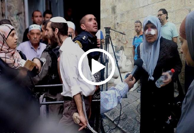 Dans cette vidéo, on peut clairement voir des colons qui n’hésitent pas à narguer les palestiniens sous protection policières des forces israéliennes.