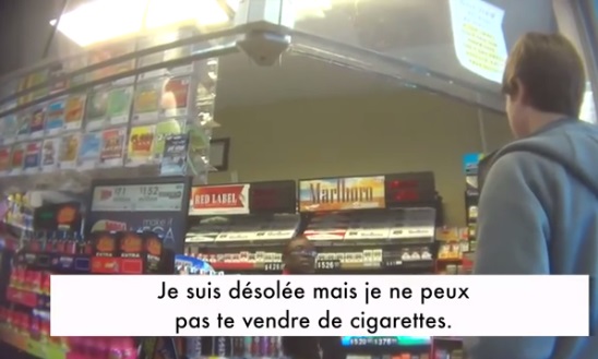 Un adolescent de 13 ans va tenter de braver les interdits dus à son jeune âge. Il rentre dans un bureau tabac et demande des cigarettes ce qui lui sera refusé, idem pour de l’alcool et des billets de loterie.