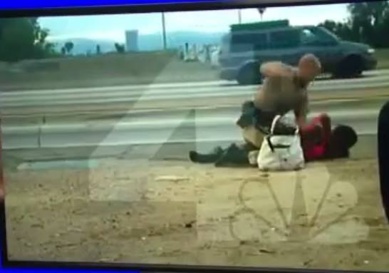 Dans la vidéo, l’agent peut être vu saisissant la femme par derrière, la jetant à terre, et l’assénant de nombreux coup de poing sur le visage et le haut du corps.