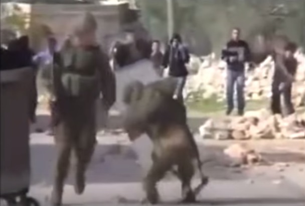 Mais toute cette panoplie militaire ultra sophistiquée ne lui sert qu’à pourchasser des bambins munis de cailloux.