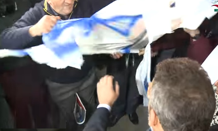 Indignés, les marocains ont voulu marquer leur désaccord à la présence d’un pays criminel au sein du Royaume, ils vont même brûler le drapeau israélien, geste rare au Maroc plutôt discret quand il s’agit de dénoncer les crimes d’Israël.