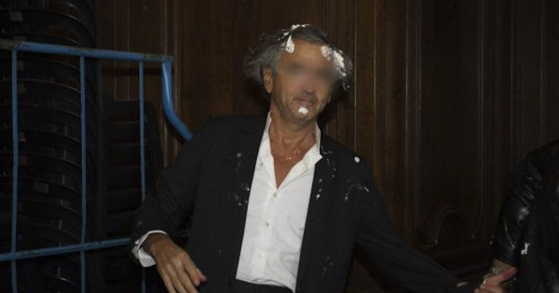 Georges le Gloupier, «Gloup Gloup» pour les intimes, le célèbre entarteur a encore frappé ! Sa cible préférée ? Bernard Henri Lévy bien sûr !
