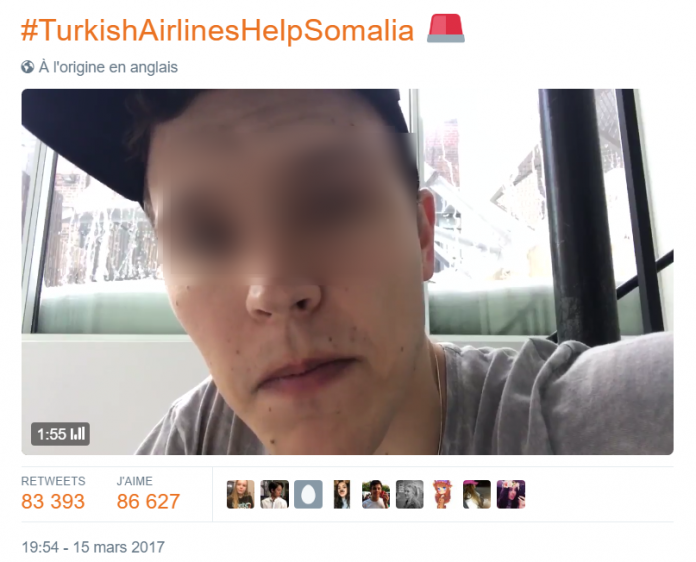 Le Youtubeur ne se contente pas de parler, il souhaite agir et lance un défi à la «love army» qu’il appelle à se mobiliser pour remplir un avion de nourriture vers la Somalie. Il contacte la seule compagnie qui dessert le pays, la Turkish Airlines en lançant le hashtag #TurkishAirlinesHelpSomalia.