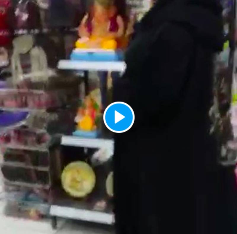 La vidéo montre deux femmes dans un magasin, debout près d’un affichage des statues. L’un d’eux est vu en train de saisir des statues et de les écraser au sol.