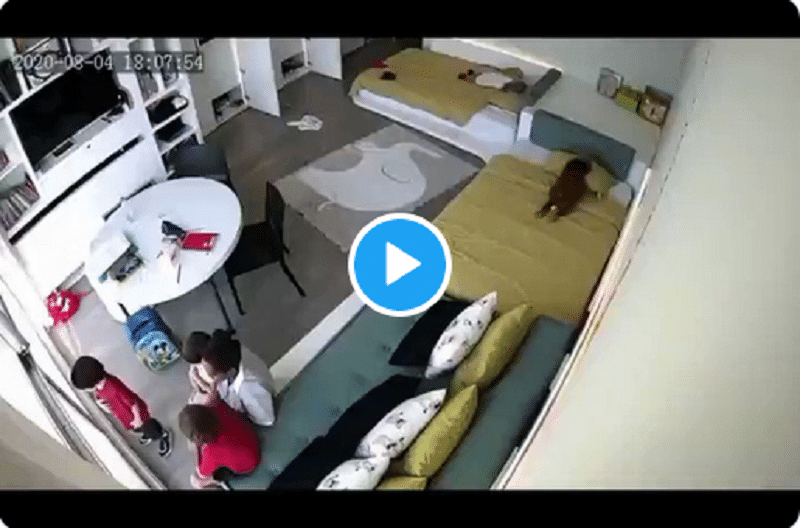 Dans la vidéo, on voit une femme accompagnée de ses enfants installée dans son appartement de Beyrouth. Puis l’un des enfants semble apercevoir quelque chose d’inhabituel à travers la fenêtre. La mère également semble s’inquiéter. C’est alors que l’on entend soudainement une forte explosion et que l’on voit la famille de Beyrouth propulsée au fond de son canapé, sous les débris de la fenêtre. On entend alors la mère dire :