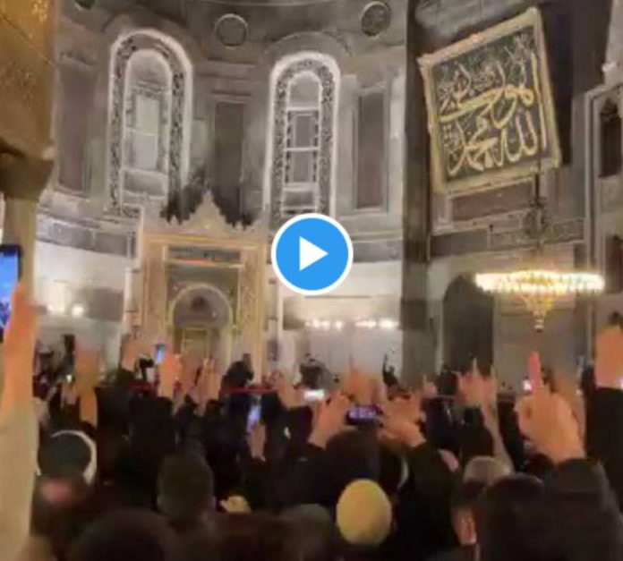 Scenes from Masjid Aya Sophia after the news of Recep Tayyip Erdogan’s presidential victory was announced. pic.twitter.com/ZcgKCCsaKA