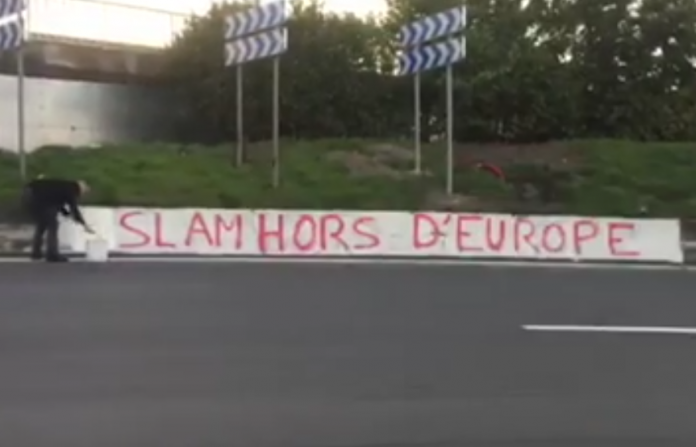 A l’image de Bulent Meric, un internaute qui a publié une petite vidéo sur sa page Facebook où on le voit afféré à effacer les traces d’un tag islamophobe. Muni de son pinceau, il a patiemment recouvert l’énorme tag «Islam hors d’Europe» d’une peinture blanche pendant que plusieurs voitures le frôlent. L’inscription tracée en rouge à la sortie de l’autoroute est mise en évidence à la vue de tous.