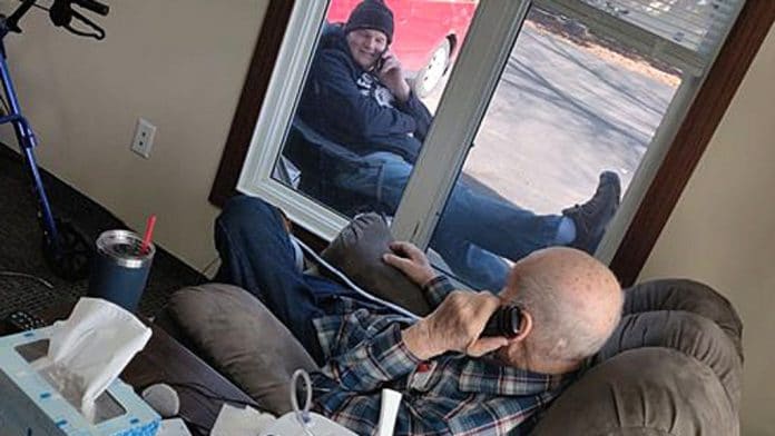 Aux Etats-Unis, dans l’état du Minnesota, un homme âgé à la chance de recevoir la visite de son fils tous les jours malgré les mesures de quarantaine mise en place dans sa maison de retraite.