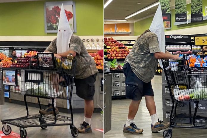 La cagoule blanche distinctive du groupe extrémiste a été aperçue dans les allées d’un supermarché Von dans la ville de San Diego, dans le comté de San Diego, samedi, a rapporté le San Diego Union-Tribune.
