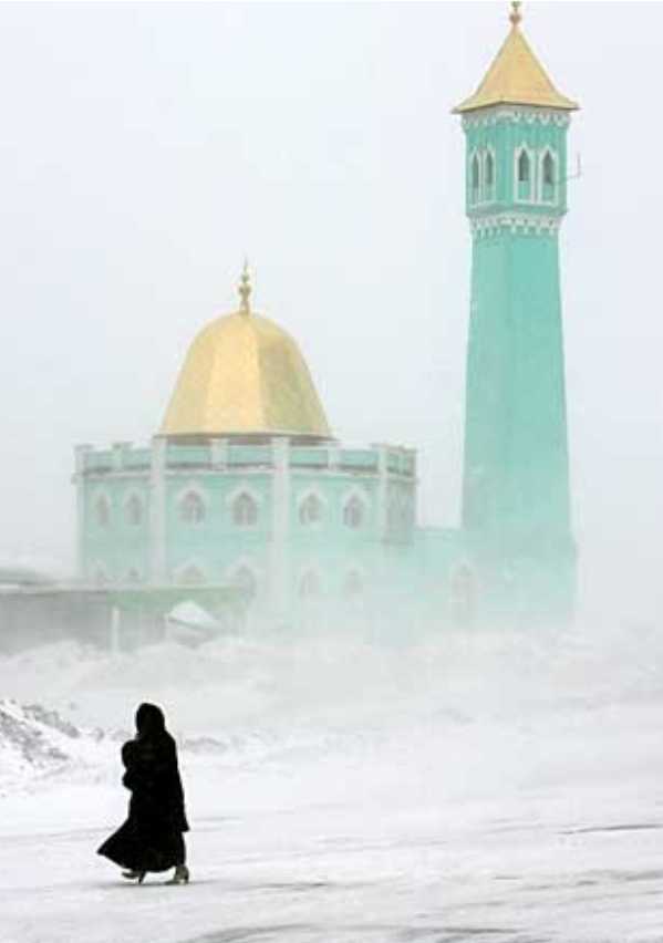 Figée dans la glace entre terre mer et banquise ( selon la saison), les températures sont polaires et malgré le froid glacial, les Inuits (Esquimaux ) ont construit leur première «véritable» Mosquée en 2010 .