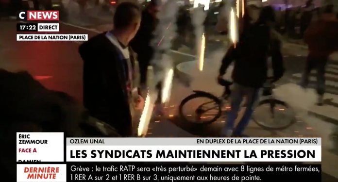 Une équipe de CNews touchée par des projectiles #grevedu17decembre #greve17decembre pic.twitter.com/DYh9x7M3gm
