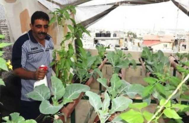 « Je rêvais de ce genre de vie » dit Khader en arrosant son carré de choux, de piments et de haricots verts sur le toit de son immeuble de quatre étages. De ce point élevé il contemple les toits de Bethléem et de Jérusalem.