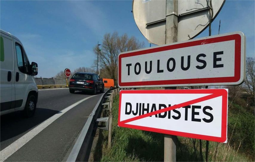 Ce mardi 27 mars, sept panneaux « djihadistes » barrés d’un trait rouge posés autour de l’agglomération toulousaine ont été retirés par les agents des Autoroutes du Sud de la France.