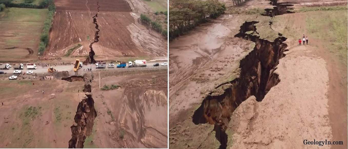La vallée du Rift est-africain s’étend sur plus de 3 000 km du golfe d’Aden au nord vers le Zimbabwe au sud, divisant la plaque africaine en deux parties inégales: les plaques somalienne et nubienne. L’activité le long de la branche orientale de la vallée du Rift, qui s’étend le long de l’Éthiopie, du Kenya et de la Tanzanie, est devenue évidente lorsque la grande fissure est soudainement apparue dans le sud-ouest du Kenya.